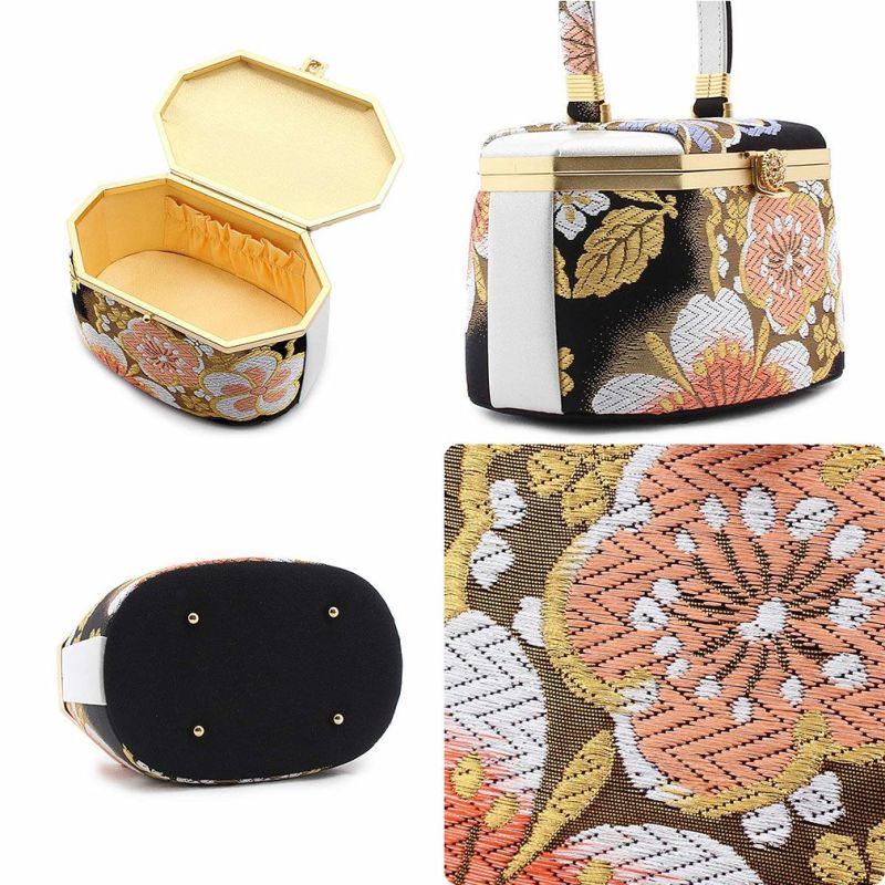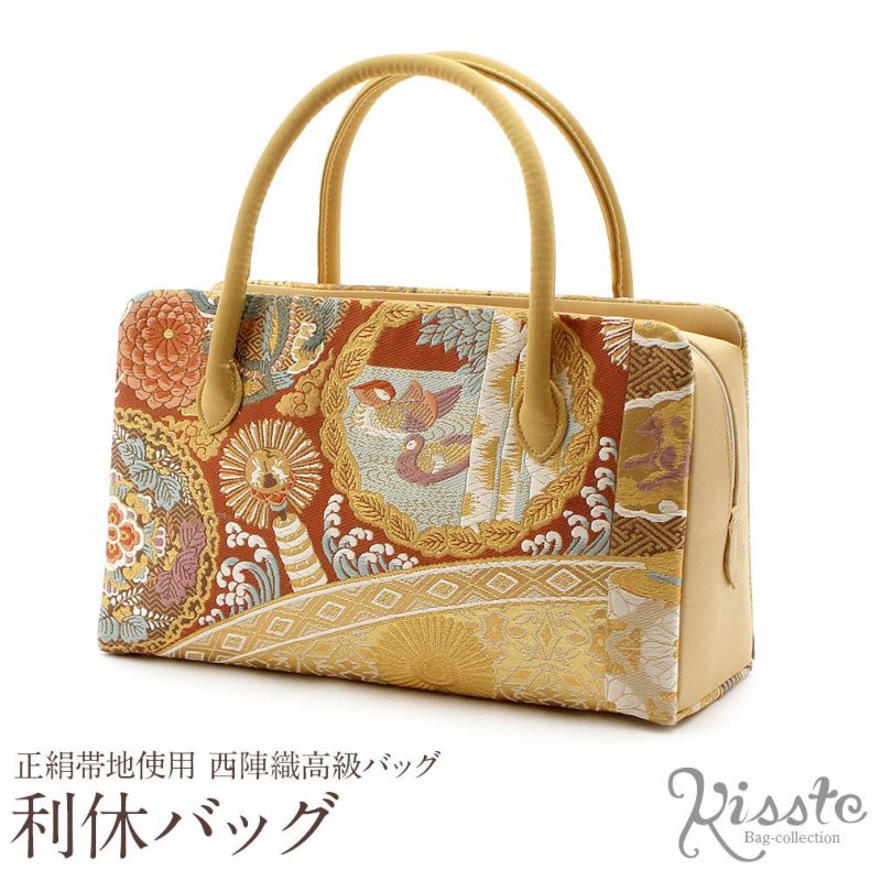 御茶席はもちろん 結婚式の黒留袖 色留袖や訪問着に 留袖 バッグ 利休バッグ 訪問着用 白 金 浅葱 ミント 花七宝 西陣織 正絹帯地 日本製 黒留袖 色留袖 訪問着 礼装用 フォーマル