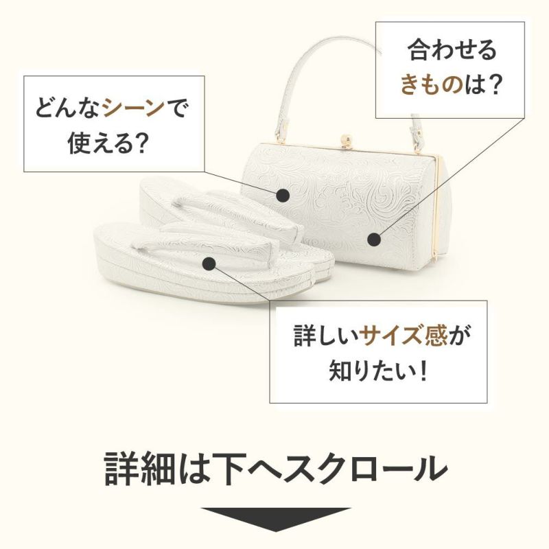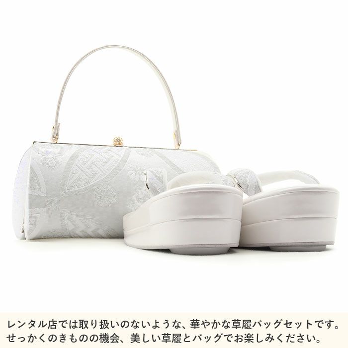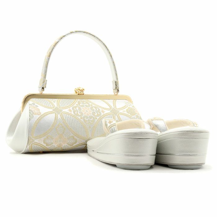 痛くなく歩きやすい、初めての方にも安心の履き心地 振袖 草履バッグセット 成人式 草履バッグセット 振袖用 紗織 LLサイズ 大きい 白 金 西陣織 正絹帯地 松丸 吉祥紋 2の3枚芯 日本製 パールトーン加工