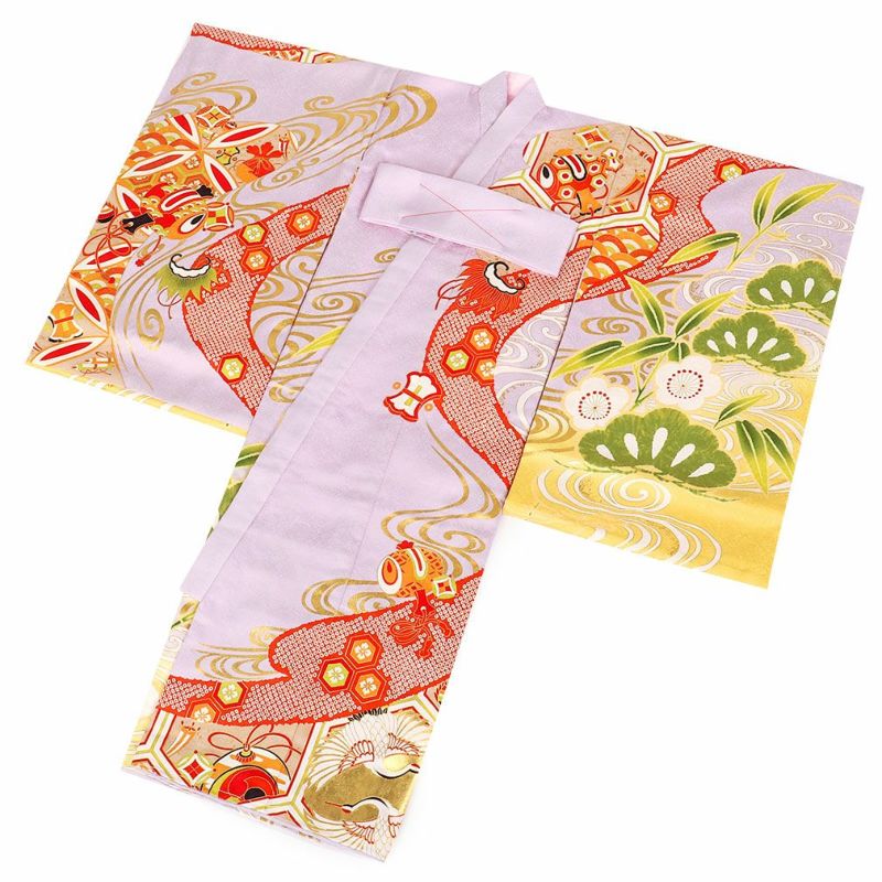 お宮参り 女の子 着物 産着 服装 赤ちゃん 祝い着 お宮参り 着物 女の子 産着 祝い着 藤色 薄紫 金 対い鶴 宝尽くし 亀甲 松 正絹 京友禅 のしめ 掛け着 初着 日本製