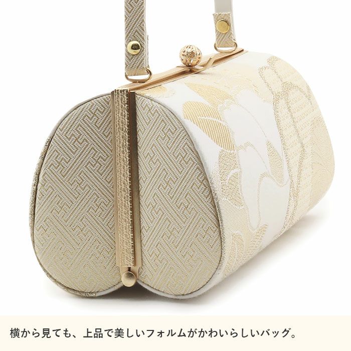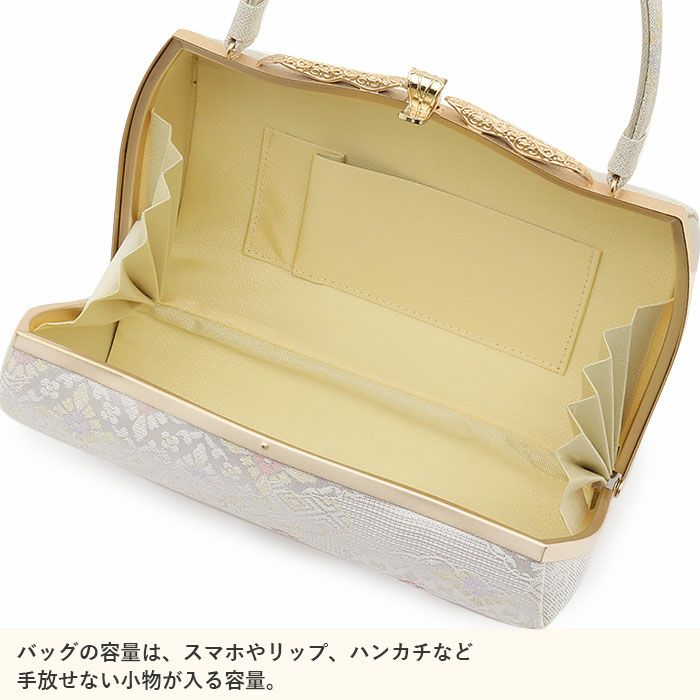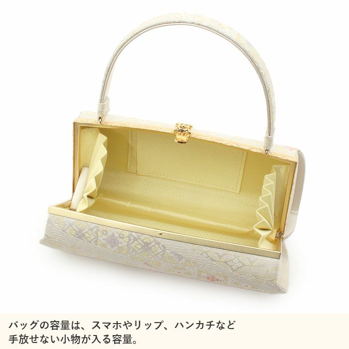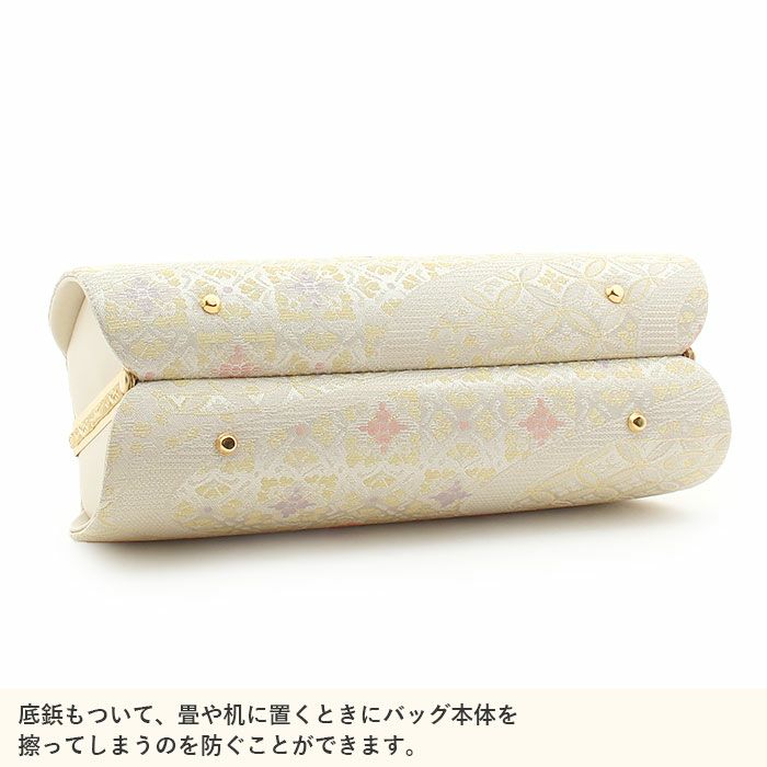 御茶席はもちろん 結婚式の黒留袖 色留袖や訪問着に 留袖 バッグ 利休バッグ 訪問着用 白 ホワイト 銀 シルバー 花菱 西陣織 正絹帯地 日本製 黒留袖 色留袖 訪問着 礼装用 フォーマル