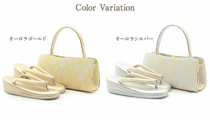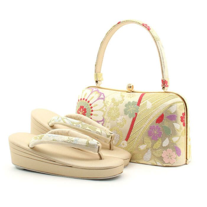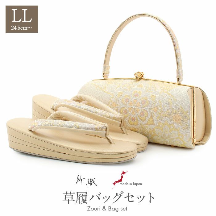 草履バッグ セット 成人式 振袖用 留袖用 訪問着用 <紗織> Sサイズ Mサイズ Lサイズ LLサイズ 日本製 <クリームゴールド・シルバー/桜花丸刺繍>