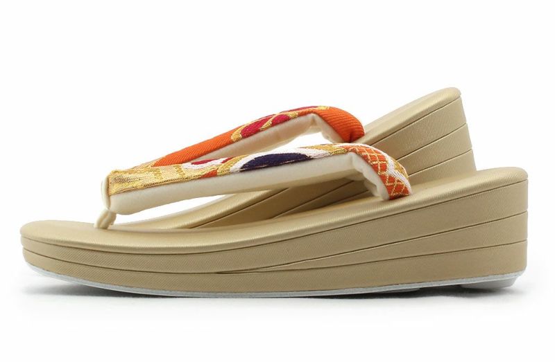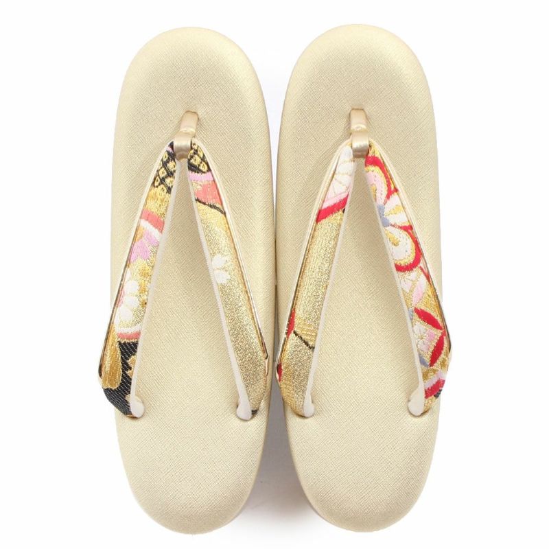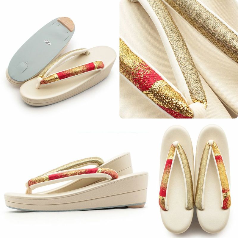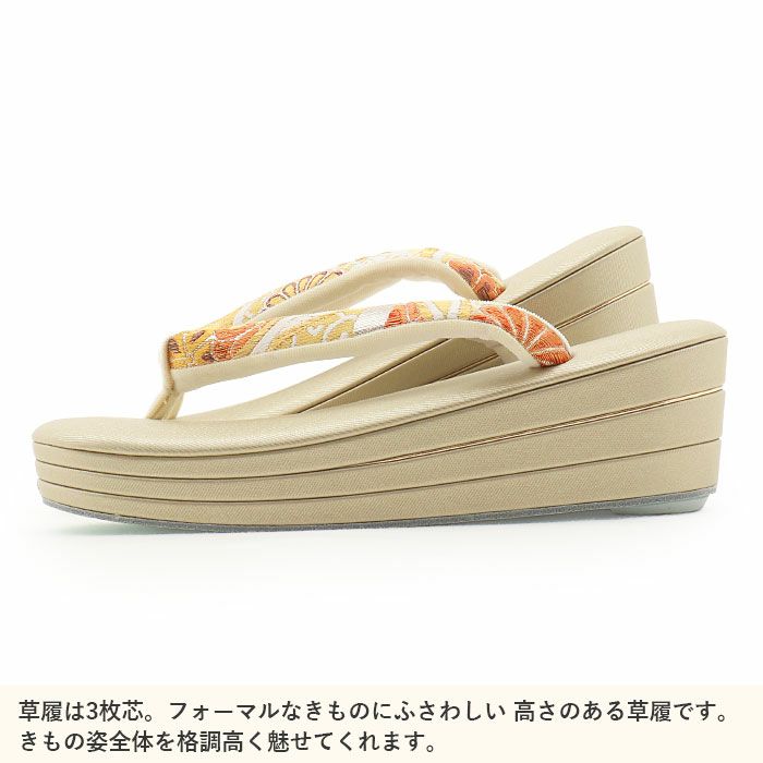≪在庫限り≫ 結婚式の黒留袖 色留袖や訪問着に 草履 留袖用 訪問着用 レディース 紗織 沙織 M クリーム ゴールド 立涌 花文 合皮 3枚芯 かかと高め 日本製 黒留袖 色留袖 礼装用 フォーマル 結婚式