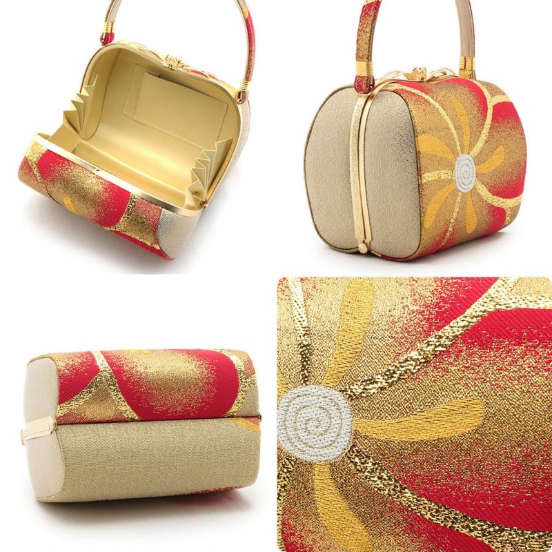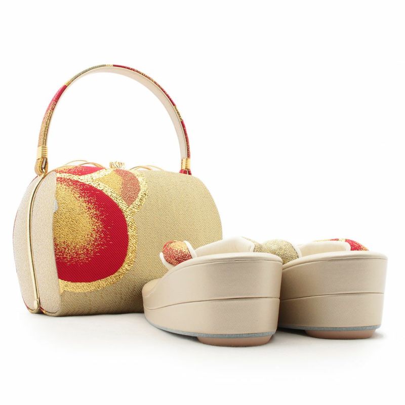 成人式や結婚式の華やかな振袖に アウトレット 振袖 草履 バッグ セット 成人式 草履バッグセット 振袖用 振り袖 フリーサイズ Lサイズ 華紋 桜 赤 金 橙 白 正絹帯地 日本製