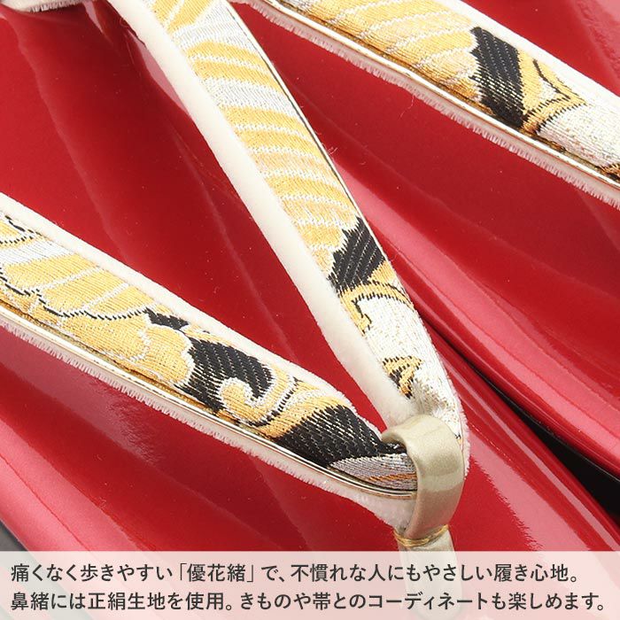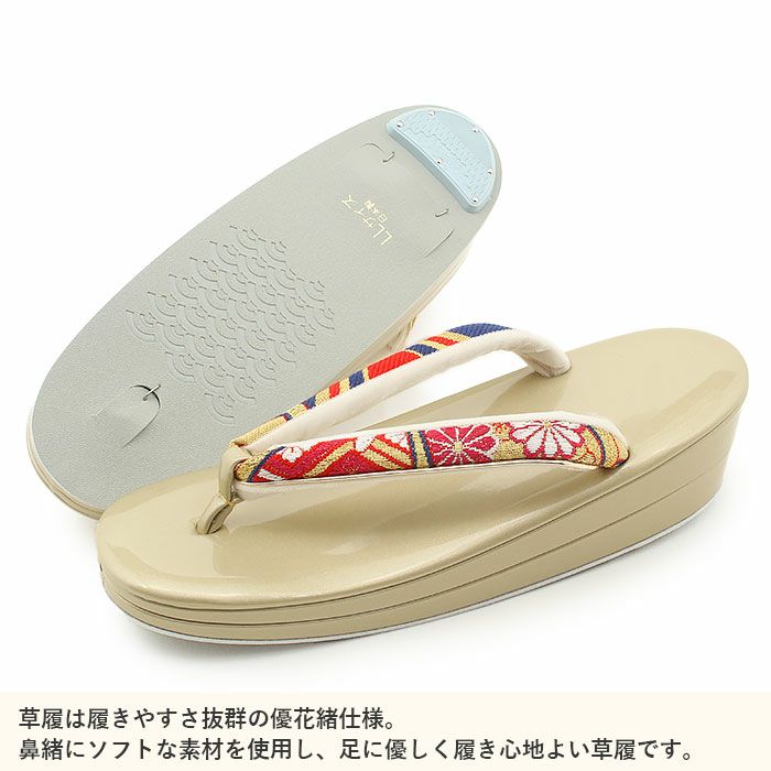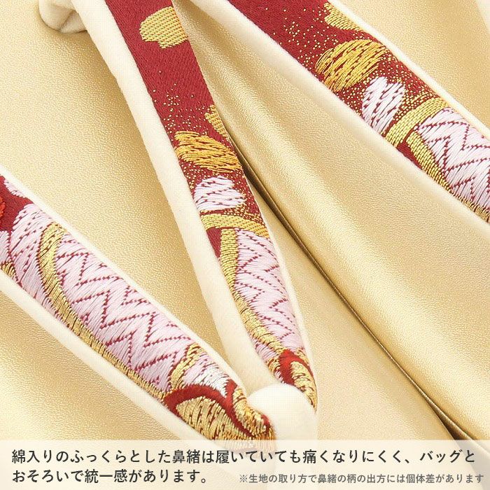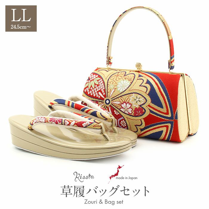 歩きやすい優花緒、初めての方にも安心の履き心地 草履バッグセット 成人式 振袖用 卒業袴 成人用 LLサイズ 赤 金 華紋 桜紋 正絹帯地 2枚芯 優花緒 大きい 結婚式 披露宴 日本製