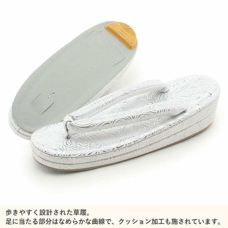 ≪在庫限り≫ 結婚式の黒留袖 色留袖や訪問着に 草履 留袖用 訪問着用 レディース 白梅謹製 L シルバー 銀 笹蔓 唐花 織生地 2の3枚芯 日本製 黒留袖 色留袖 礼装用 フォーマル 結婚式