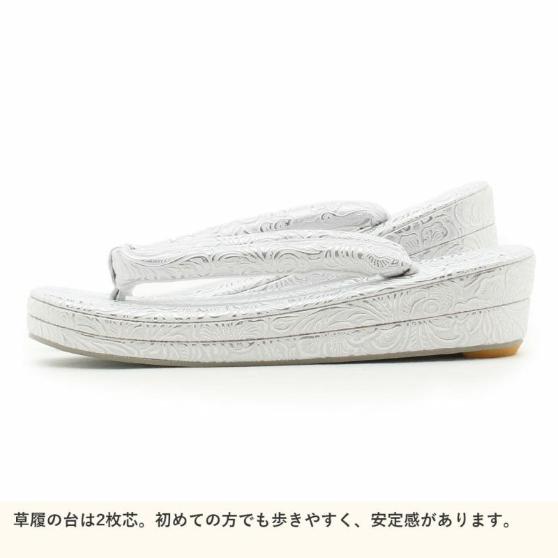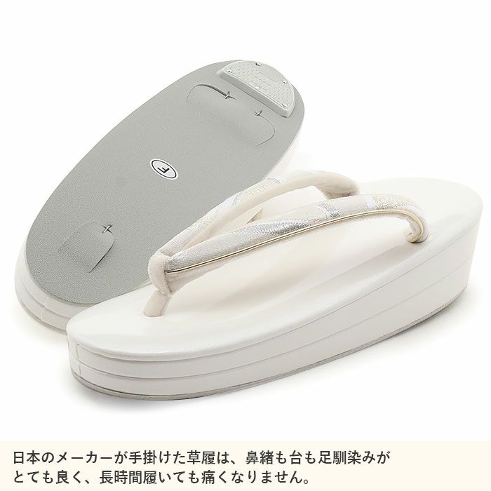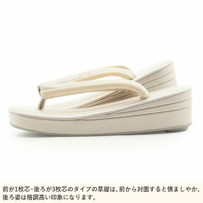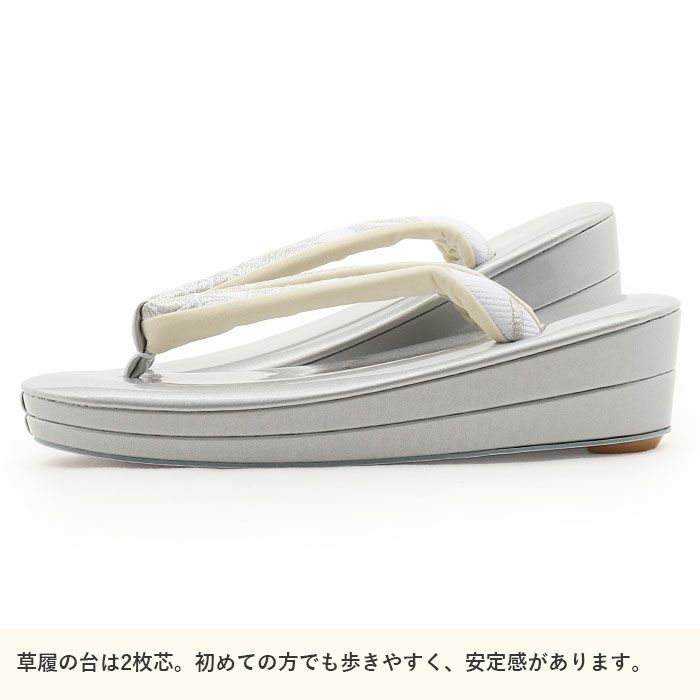 痛くなくて歩きやすい、初めての方にも安心 草履 留袖用 訪問着用 レディース Mサイズ クリームシルバー 銀 合皮 1枚芯 日本製 痛くない 歩きやすい