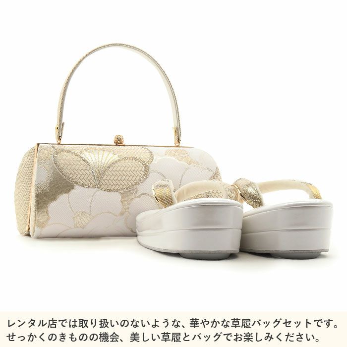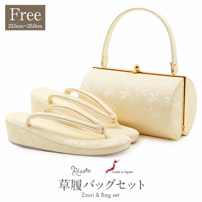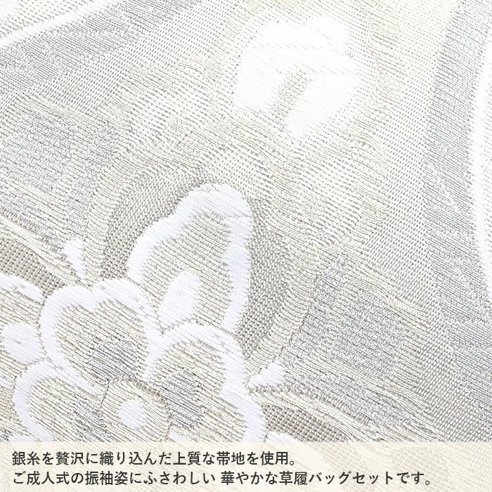 【アウトレット】振袖 草履 バッグ セット 成人式 草履バッグセット 振袖用 振り袖 M クリーム系 薔薇 正絹帯地 日本製