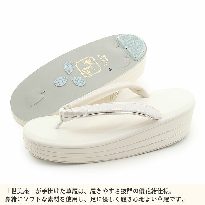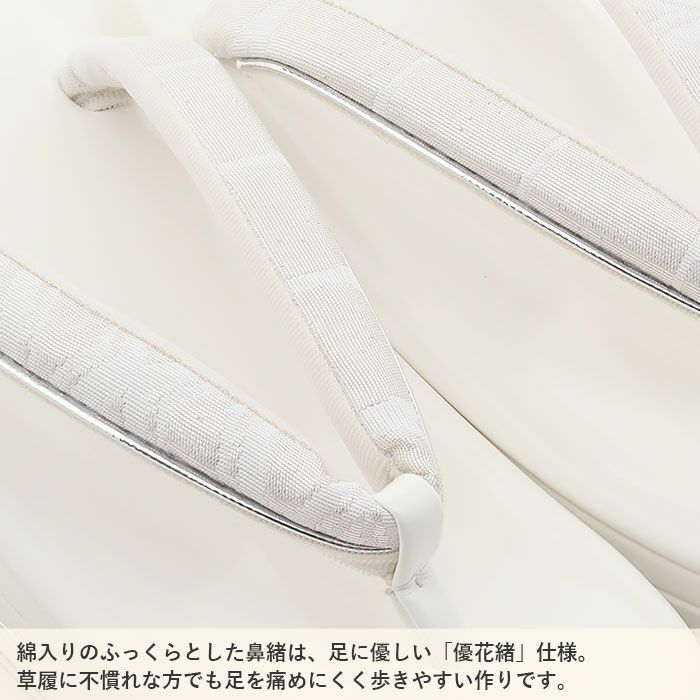 歩きやすい「優花緒」仕様。初めての方にも安心の履き心地 草履バッグセット 成人式 振袖用 成人用 世美庵 Lサイズ 白 ホワイト パール ふくれ織 エナメル 3枚芯 クラッチバッグ 和洋兼用 優花緒 日本製