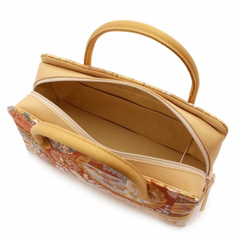 ≪在庫限り≫ 結婚式の黒留袖 色留袖や訪問着に 草履バッグセット 留袖用 訪問着用 草履バッグ フリー L シャンパンゴールド ベージュゴールド オレンジ 松皮菱 万寿菊 絹 西陣織 帯地 2枚芯