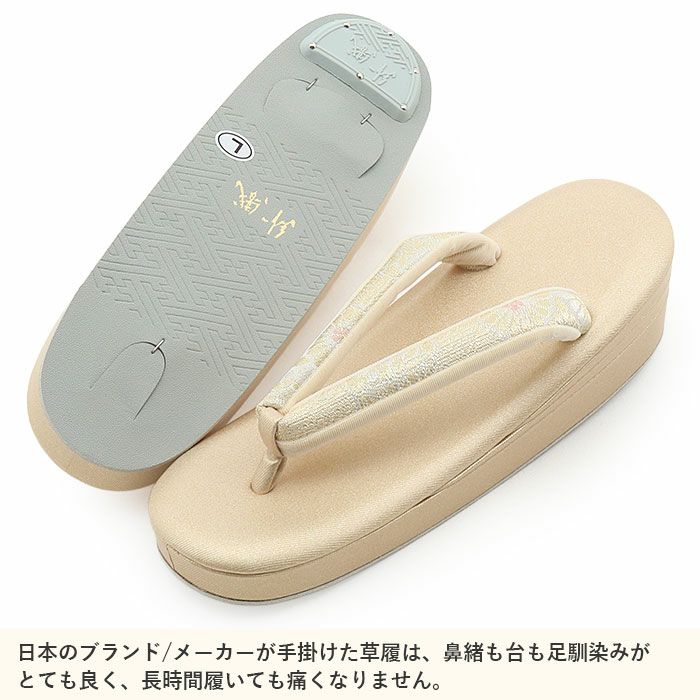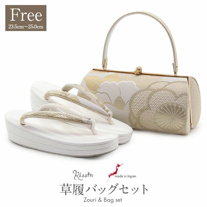 痛くなくて歩きやすい、初めての方にも安心の履き心地 草履バッグセット 留袖用 訪問着用 華三彩 キステオリジナル Sサイズ Mサイズ Lサイズ LLサイズ ゴールド シャンパンゴールド シルバー 吉祥紋 織り生地 2枚芯 日本製