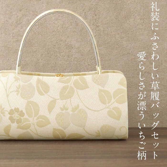 痛くなくて歩きやすい、初めての方にも安心の履き心地 草履バッグセット 留袖用 訪問着用 草履バッグ 紗織 沙織 M L オーロラ ゴールド シルバー 全2色いちご 唐草 苺 ラメ生地 3枚芯 日本製