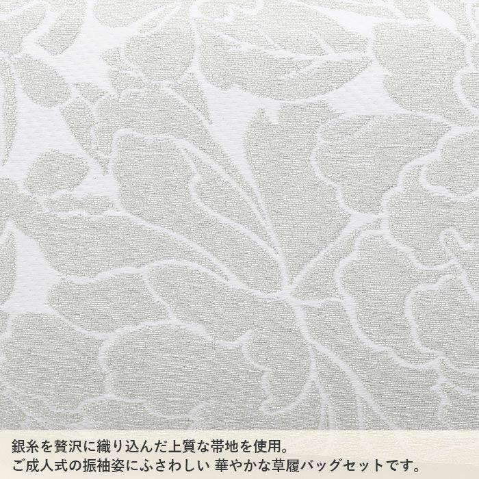 成人式や結婚式の華やかな振袖に 草履バッグセット 成人式 振袖用 キステオリジナル Sサイズ Mサイズ Lサイズ LLサイズ 花紋 金 シルバー 銀 帯地 エナメル 2枚芯