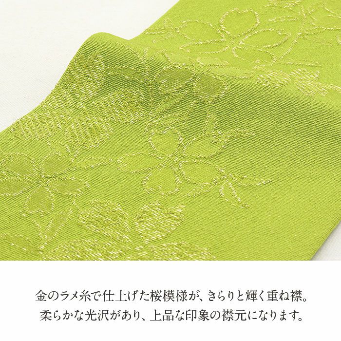 【アウトレット 在庫処分】和色の正絹重ね衿 【アウトレット】重ね衿 重衿 重ね襟 振袖用 訪問着用 ライトグリーン 黄緑 桜 メール便対応可 絹 シルク 日本製