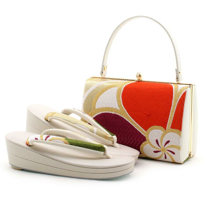 【アウトレット】振袖 草履 バッグ セット 成人式 草履バッグセット 振袖用 振り袖 フリー ホワイト&レッド 桜刺繍 白梅謹製 正絹帯地 日本製