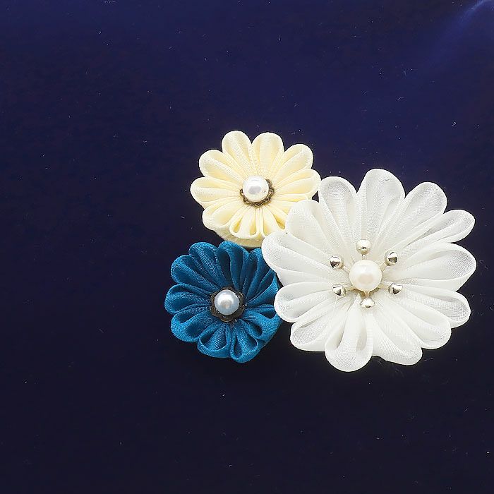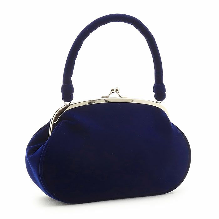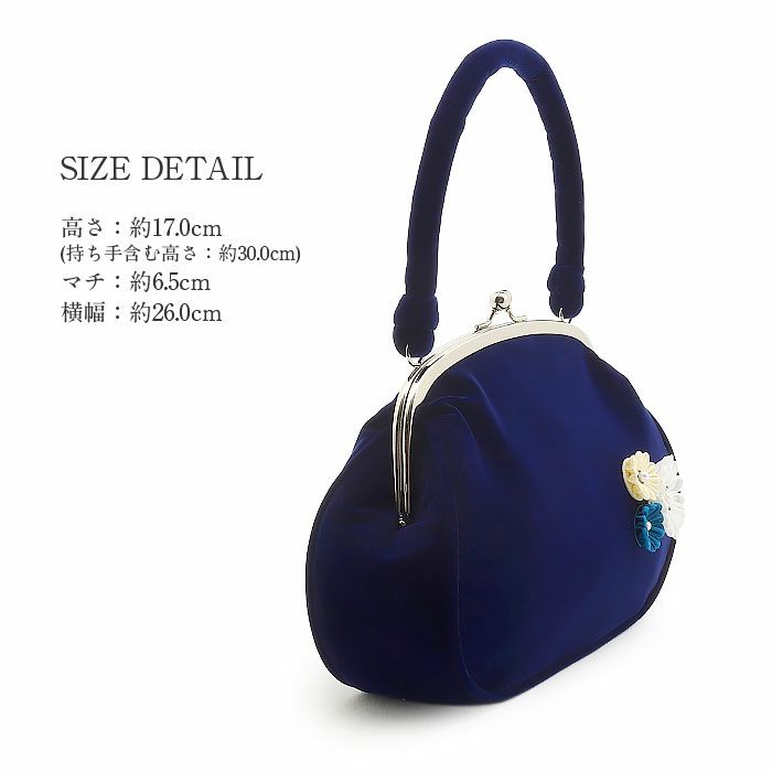 ≪在庫限り≫ 成人式や結婚式の振袖や卒業袴に がま口バッグ 成人式 振袖用 袴用 成人用 紺 ネイビー つまみ細工 3連小花 花 ベロア 起毛 振袖 卒業袴 振り袖 ママ振 おしゃれ はたち 結婚式 卒業式 卒業袴