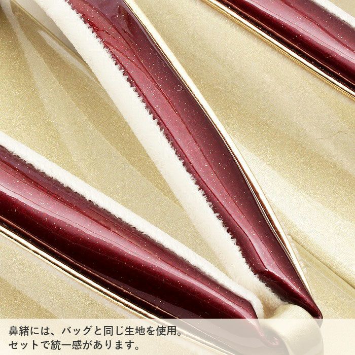 ≪在庫限り≫ 成人式や結婚式の振袖に 成人式 草履バックセット 振袖 草履バッグセット 草履 バッグ フリー L ワインレッド ゴールド 赤 金 辻が花 本皮 エナメル 螺鈿 2枚芯 日本製