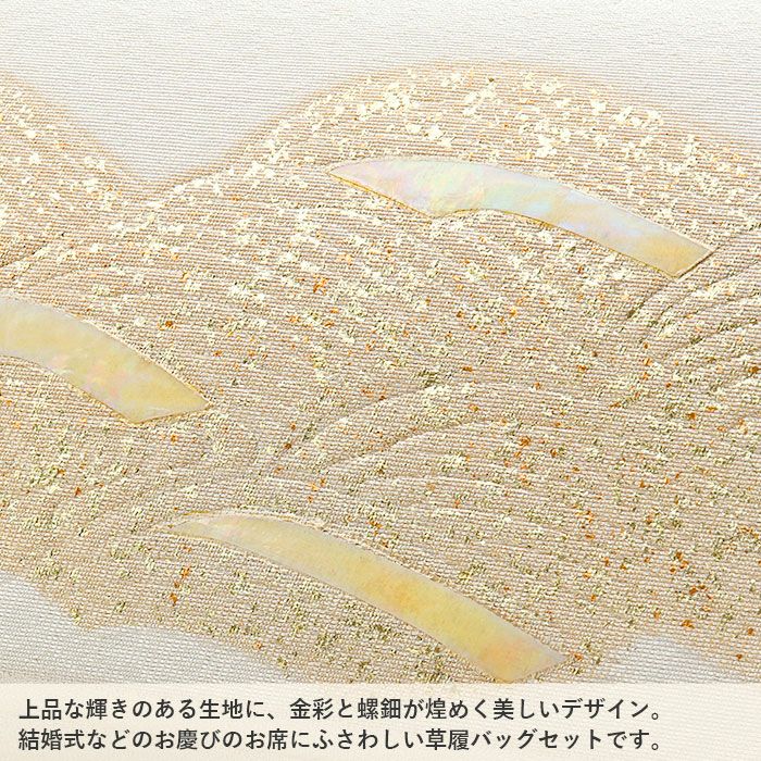 ≪在庫限り≫ 結婚式の黒留袖 色留袖や訪問着に 草履バッグセット 留袖用 訪問着用 草履バッグ 螺鈿細工 フリー L シルバー シャンパンゴールド 銀 金 流水 金彩 合皮 織生地 2の3枚芯 日本製