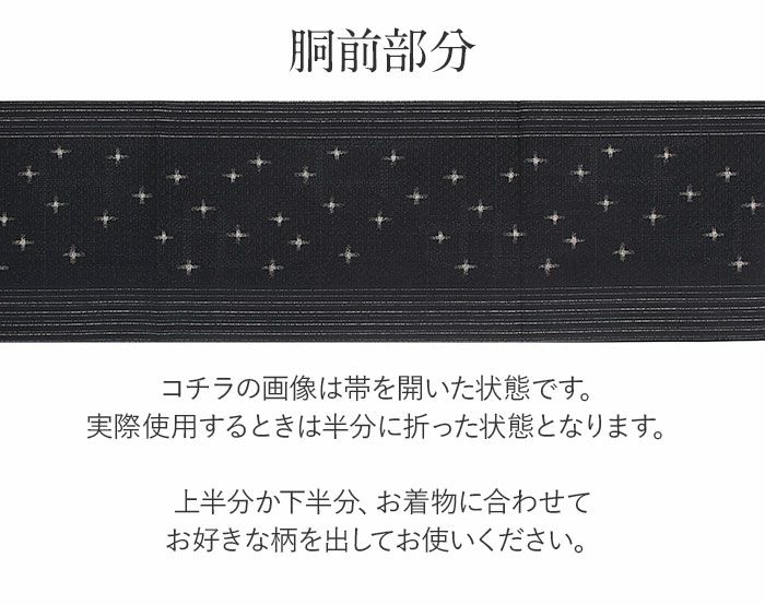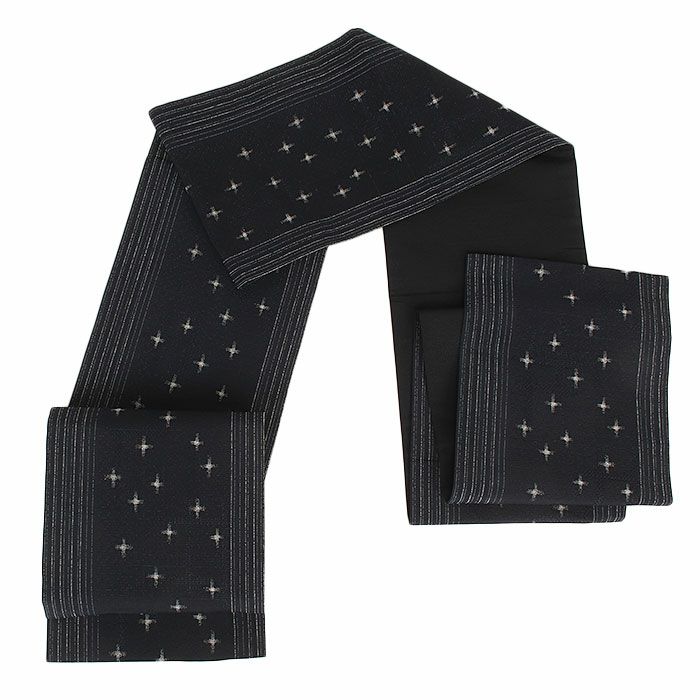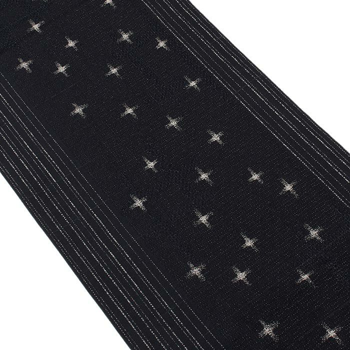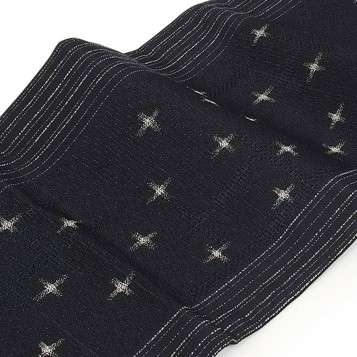 【最短日お届け】小紋 紬 色無地 御召 などのお着物に 京袋帯 黒 十字絣 ポリエステル 仕立て上がり カジュアル 小紋 紬 色無地