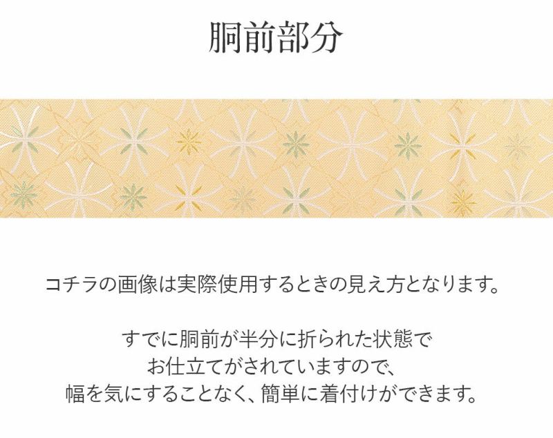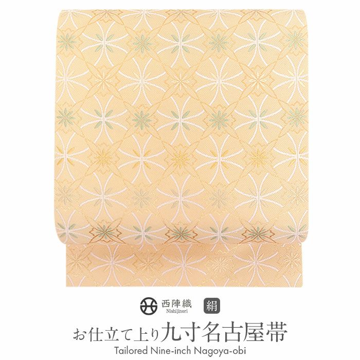 《お仕立て上り・送料込》【最短日お届け】お稽古や小紋・紬・色無地などカジュアルな着物に 名古屋帯 帯 九寸 <クリーム/松菱> 西陣 ふくい織物 正絹 お仕立て上がり 六通柄