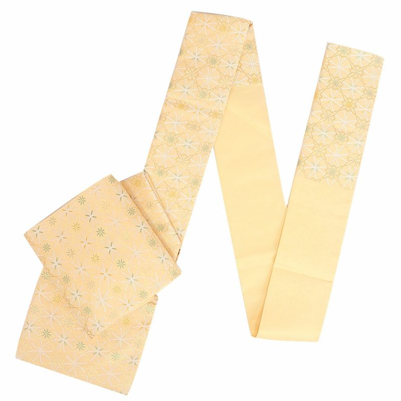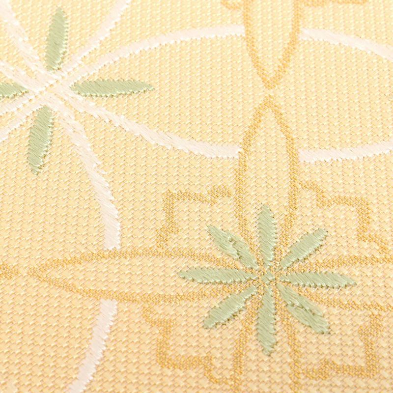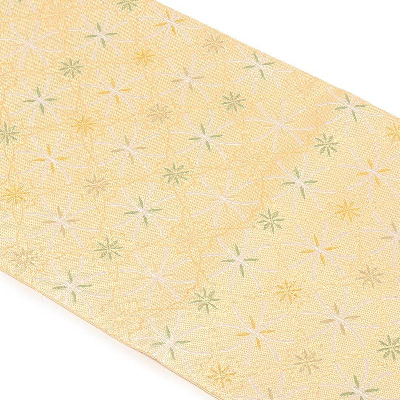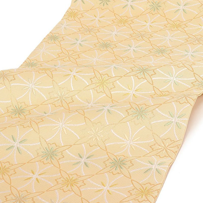 名古屋帯 薄黄色 九寸 帯 七宝 西陣織 < ふくい織物 > お仕立て上がり 6通柄 正絹