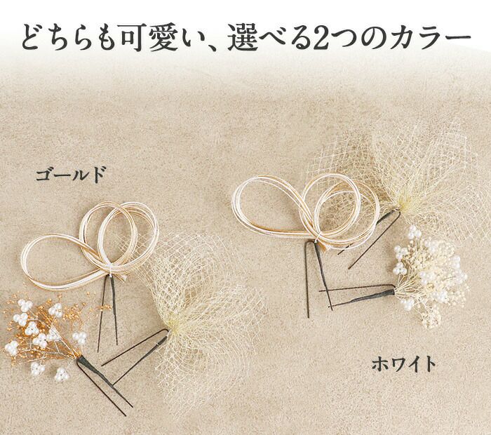 成人式や結婚式の華やかな振袖や卒業袴に 髪飾り 成人式 振袖用 Watmosphere ホワイト 白 ゴールド シルバー 花 水引き アメリカンフラワー かすみ草 日本製 振袖 卒業袴 振り袖 ママ振