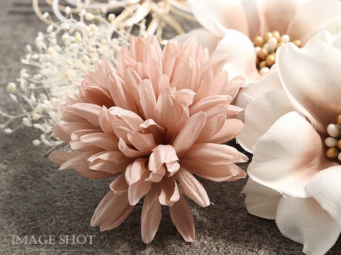 成人式や結婚式の華やかな振袖や卒業袴に 髪飾り 成人式 振袖用 Watmosphere くすみ ピンク グレージュ ブラウン 花 ピンポンマム 水引かすみ草 日本製 振袖 卒業袴 振り袖 ママ振