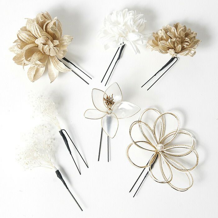 成人式や結婚式の華やかな振袖や卒業袴に 髪飾り 成人式 振袖用 Watmosphere ゴールド シルバー 花 アメリカンフラワー 水引き かすみ草 日本製 振袖 卒業袴 振り袖 ママ振