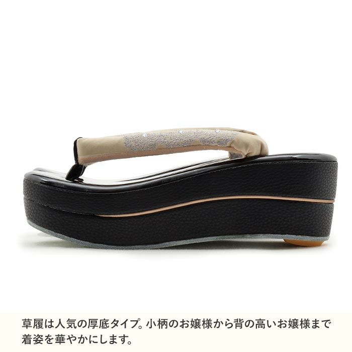 痛くなく歩きやすい、初めての方にも安心の履き心地 草履 成人式 振袖用 成人用 レディース フリーサイズ Lサイズ アイボリー ニュアンスベージュ花柄 刺繍 型押し 合皮 3枚芯