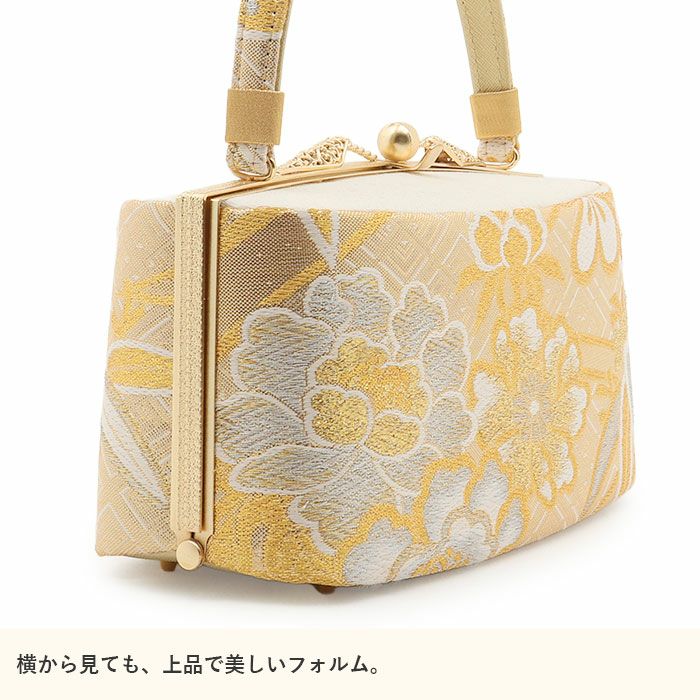 ≪在庫限り≫ 成人式や結婚式の華やかな振袖に 成人式 草履バックセット 振袖 草履バッグセット 草履 バッグ 世美庵 L ゴールド 金 ホワイト 牡丹 笹 菱 七宝 帯地 3枚芯 日本製