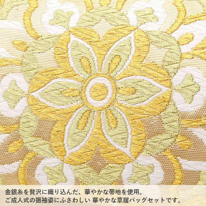 草履バックセット 成人式 振袖 正絹帯地 華紋 正絹 フリーサイズ Lサイズ