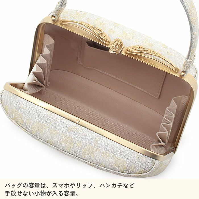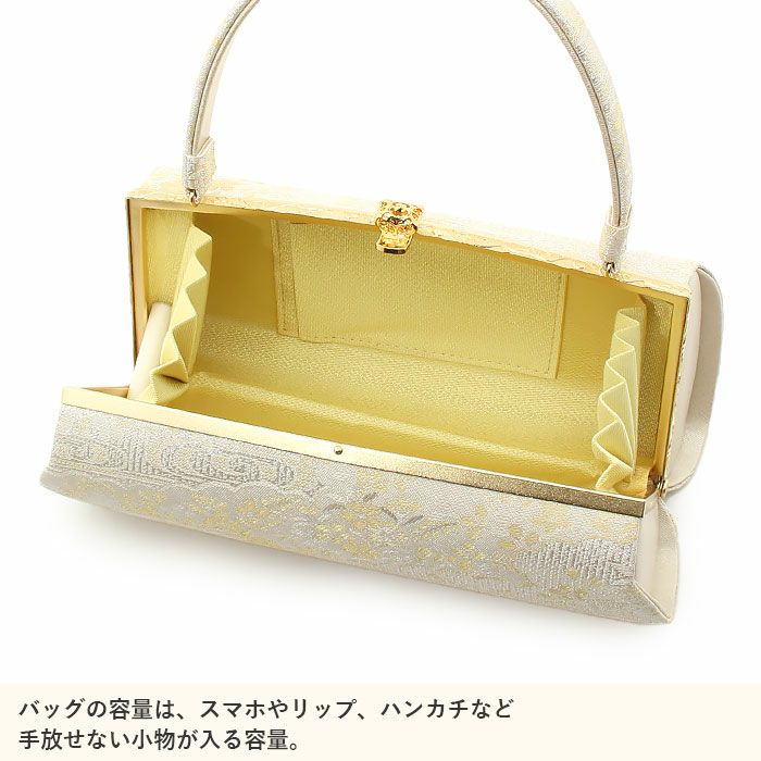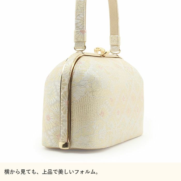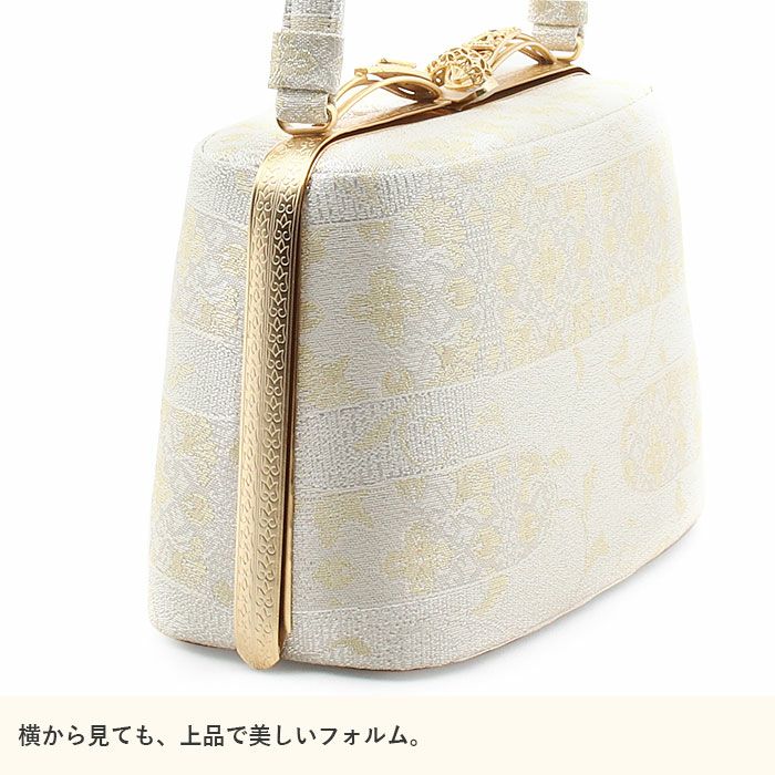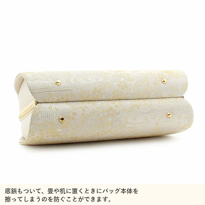 利休バッグ <アイボリー&ゴールド/華紋> 正絹帯地 日本製高級バッグ