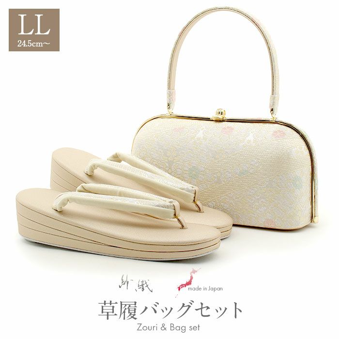 ≪在庫限り≫ 結婚式の黒留袖 色留袖や訪問着に 草履バッグセット 留袖用 訪問着用 草履バッグ 世美庵 華三彩 L クリーム シルバー 銀 アイボリー コード刺? 2枚芯 優花緒 正絹袋帯地 日本製