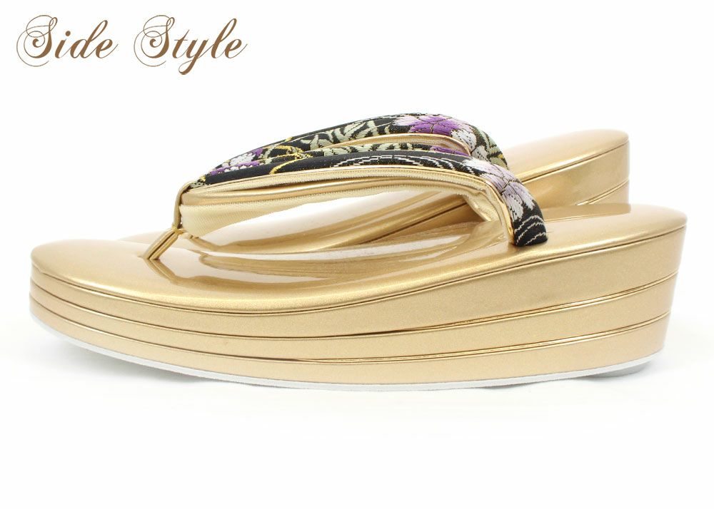 痛くなく歩きやすい、初めての方にも安心の履き心地 草履 留袖 訪問着 礼装用 レディース Lサイズ 黒 金 エナメル 型押し 牡丹 金銀たたき 2の3枚芯 日本製 優花緒