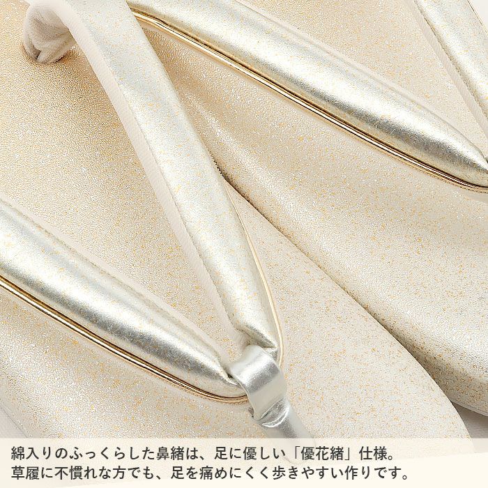 痛くなく歩きやすい、初めての方にも安心の履き心地 草履 留袖 訪問着 礼装用 レディース Mサイズ 金 ゴールド 本革 本皮 型押し 流水 銀たたき 2の3枚芯 日本製 優花緒