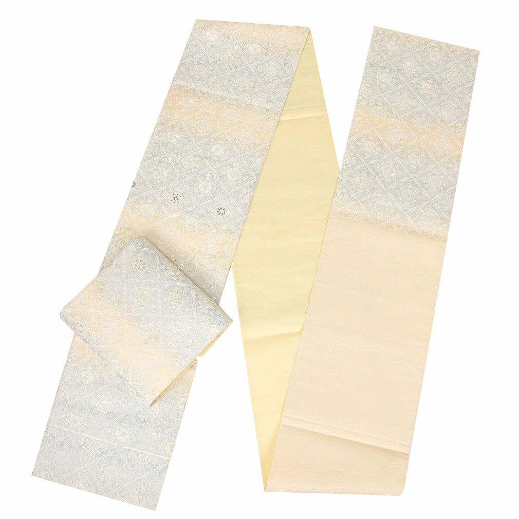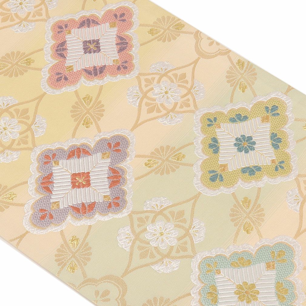 《お仕立て上り》【最短日お届け】黒留袖や色留袖、訪問着などのフォーマルなお着物に 袋帯 フォーマル 帯 留袖 訪問着 <クリーム / 花菱 > 正絹 西陣織 ふくい織物 仕立て上がり
