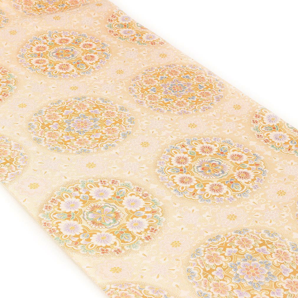 《お仕立て上り》【最短日お届け】黒留袖や色留袖、訪問着などのフォーマルなお着物に 袋帯 帯 留袖 訪問着 <クリーム・ゴールド/蜀江華紋> 絹 <西陣・華翔苑藤本仁織物>