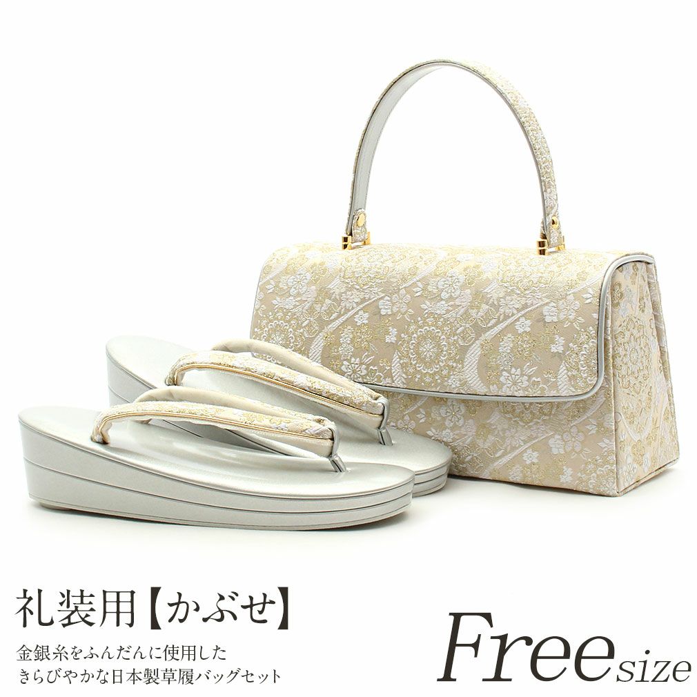 留袖用草履バッグセット 訪問着用 フリーサイズ Lサイズ 日本製 (かぶせタイプ)<シルバー・ゴールド/唐草>