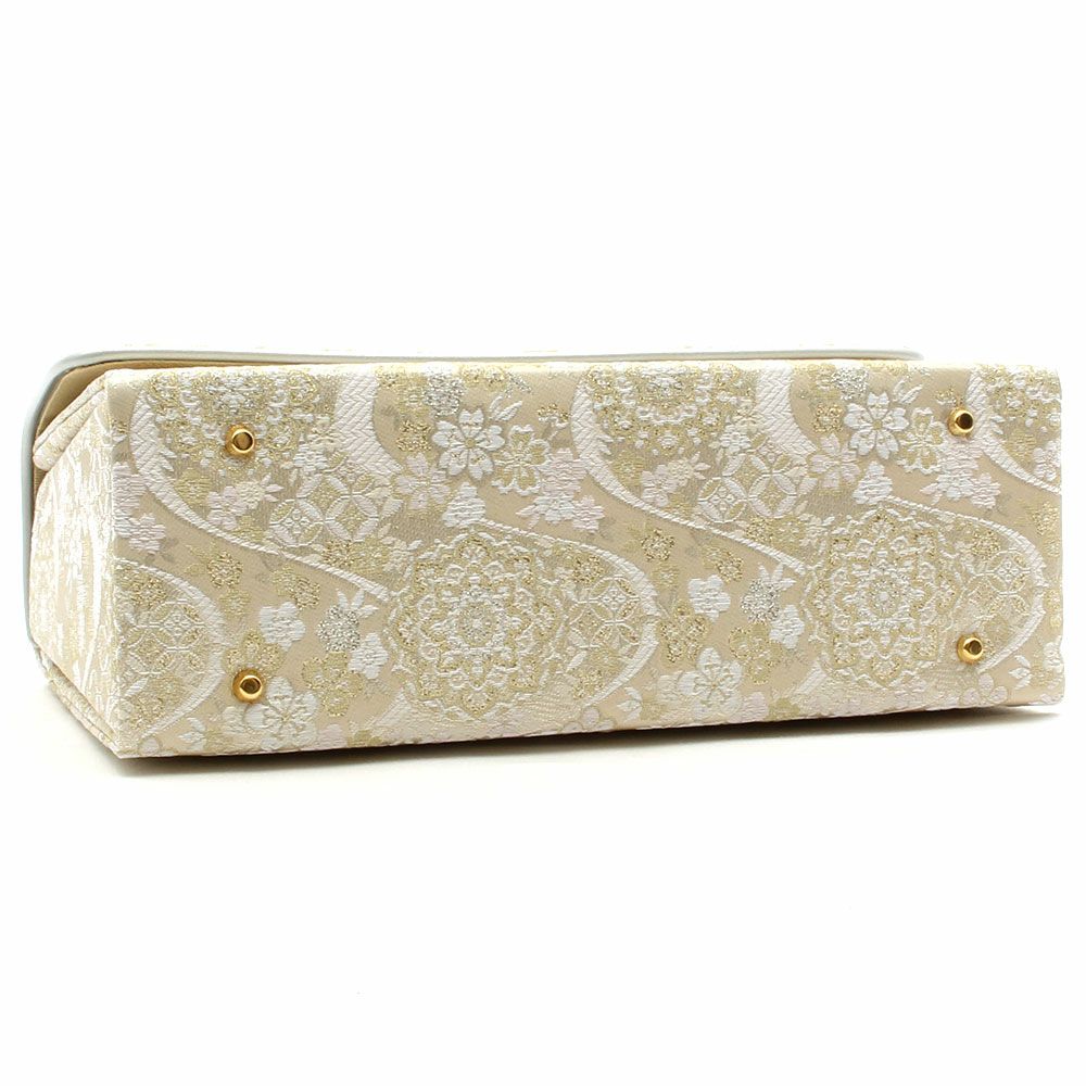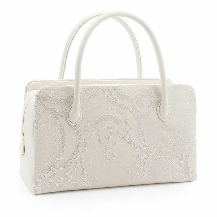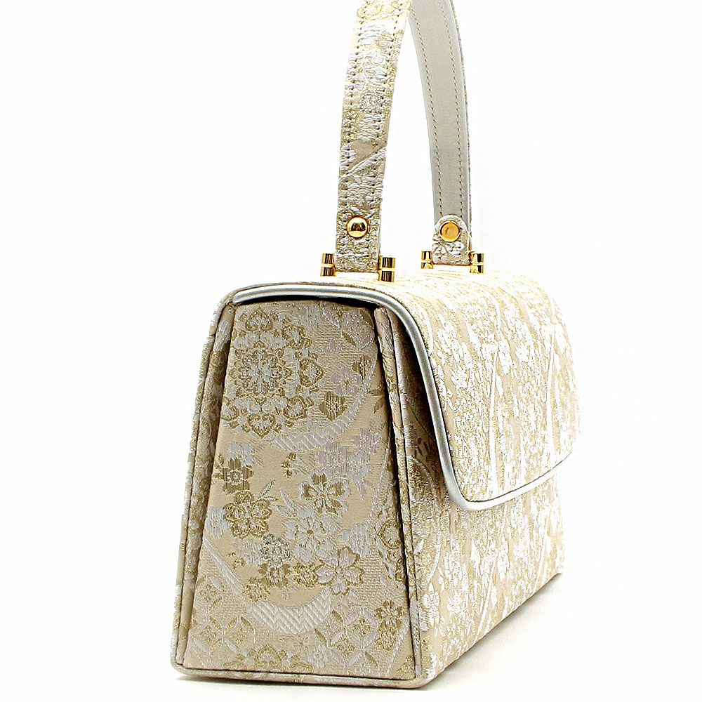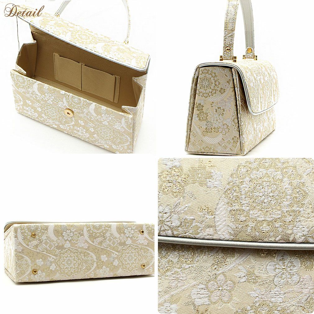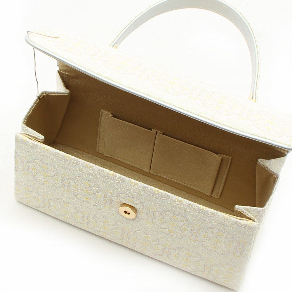 ≪在庫限り≫ あらゆる礼装に寄り添う西陣織の気品 利休バッグ オフホワイト シルバー ゴールド 白 銀 金 幾何学ライン 西陣織 正絹帯地 日本製 訪問着 礼装用 フォーマル