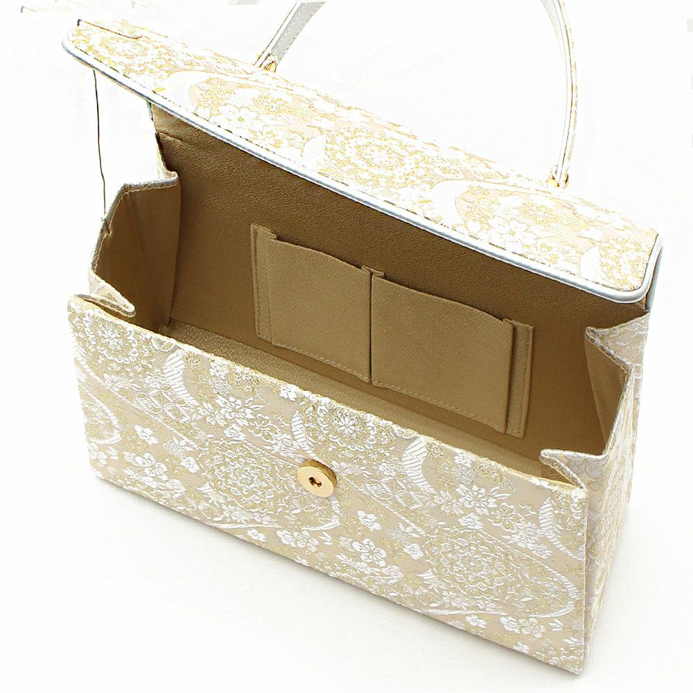 浮かび上がる唐花模様が上品な着物姿を演出 留袖 バッグ 訪問着用 礼装 岩佐謹製 唐花模様 フォーマルバッグ ゴールド シルバー 金 銀 綴れ織 日本製