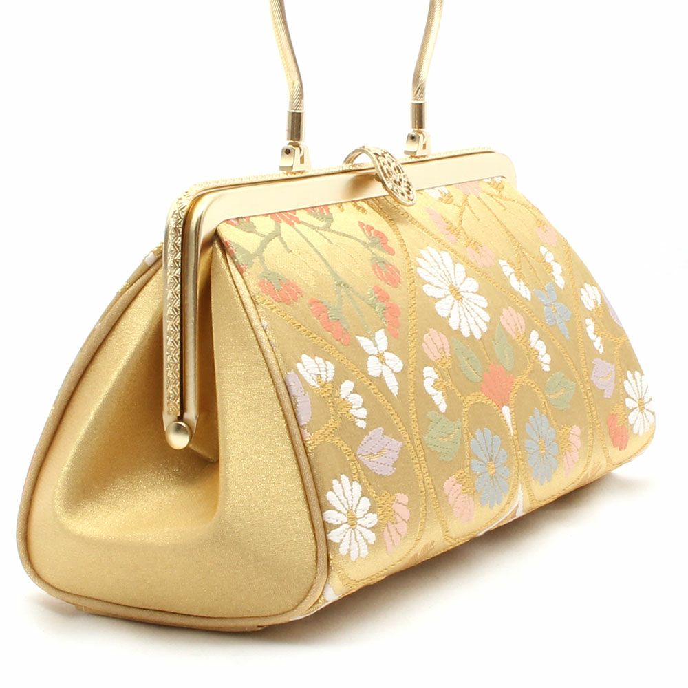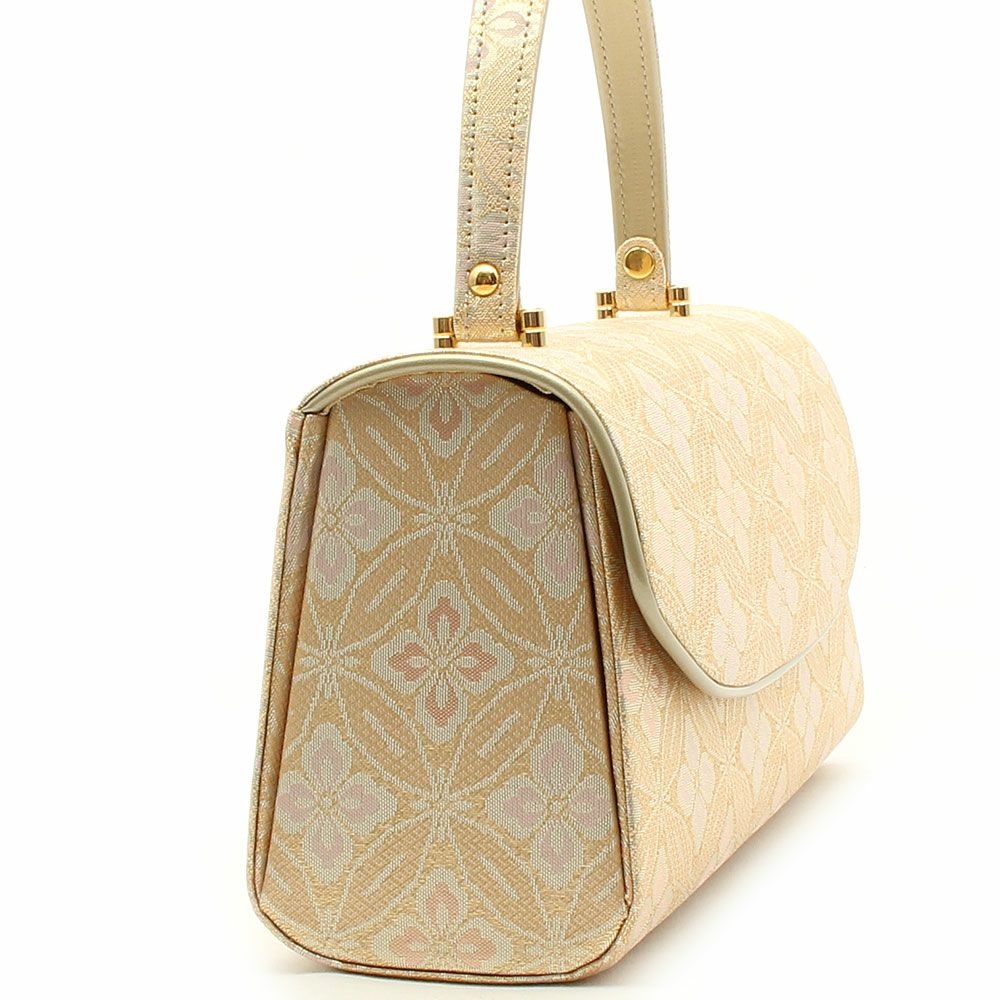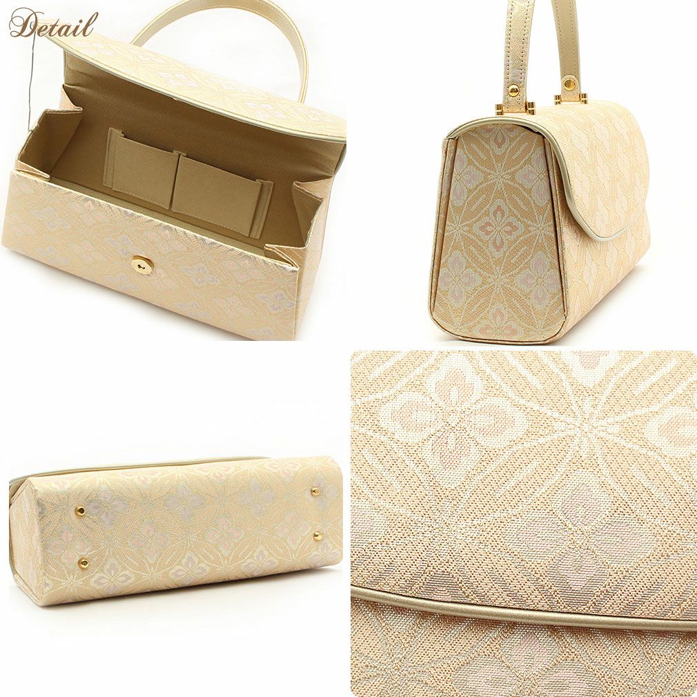 ≪在庫限り≫ あらゆる礼装に寄り添う西陣織の気品 利休バッグ 白 金 ピンク 橙 紫 亀甲 華紋 西陣織 正絹帯地 日本製 訪問着 礼装用 フォーマル 色無地 付け下げ 結婚式 お宮参り 七五三 和装バッグ フォーマル