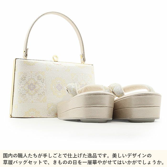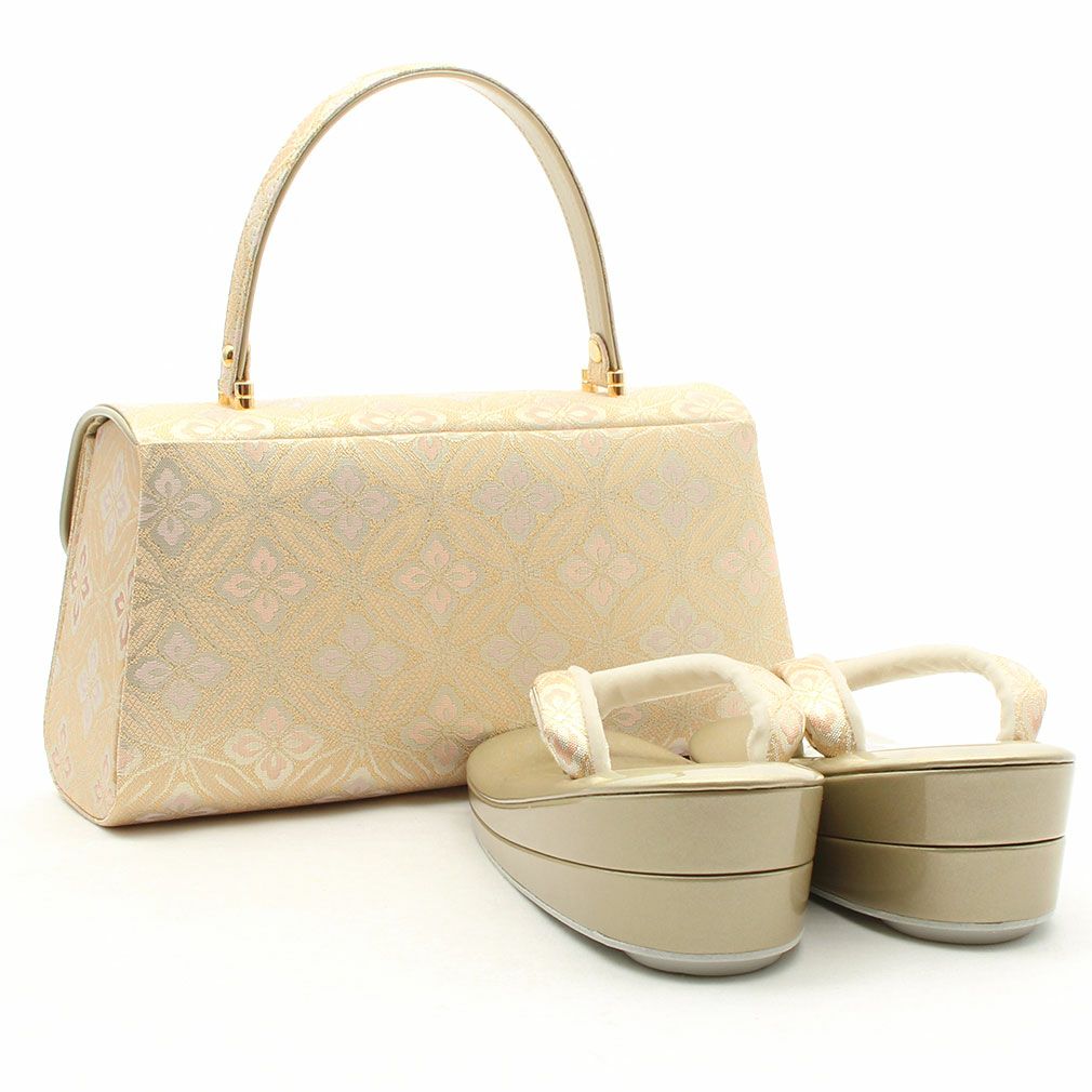 結婚式の留袖 や訪問着に合わせたい 草履バッグセット 草履バッグセット 礼装 留袖 訪問着 草履 バッグ 留袖 Lサイズ フリー ベージュ ハイヒール 七宝 花菱 キステオリジナル 日本製