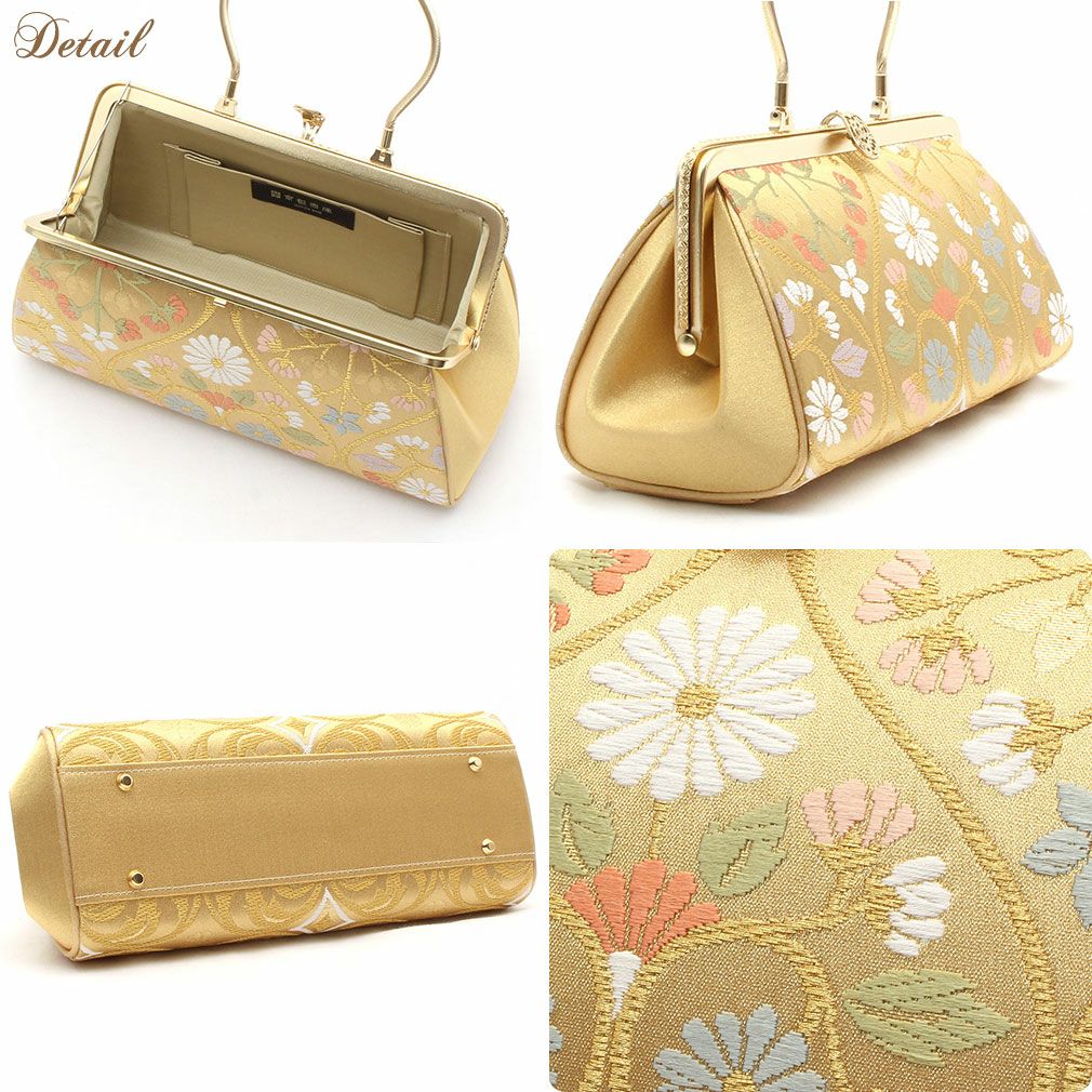 御茶席はもちろん 結婚式の黒留袖 色留袖や訪問着に 留袖 バッグ 利休バッグ 訪問着用 金 ゴールド 亀甲 花紋 西陣織 正絹帯地 日本製 黒留袖 色留袖 訪問着 礼装用 フォーマル
