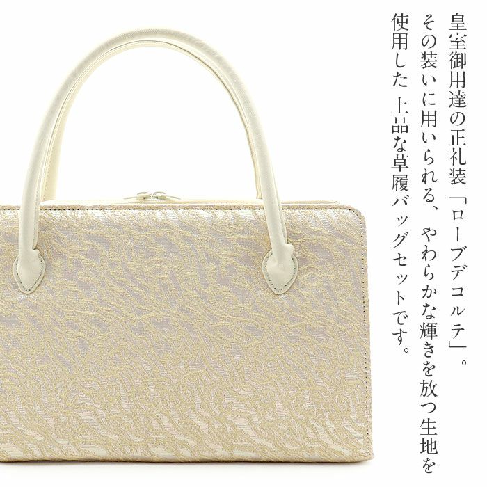≪在庫限り≫ 結婚式の黒留袖 色留袖や訪問着に 草履バッグセット 留袖用 訪問着用 草履バッグ 彩小径 フリー L アイボリー シャンパンゴールド 花文 織生地 1の2枚芯 日本製