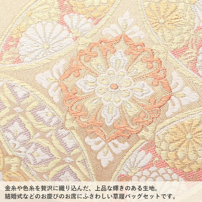 草履バッグ セット 留袖用 訪問着用 <華三彩> Sサイズ Mサイズ Lサイズ LLサイズ 日本製 綴れ織<シャンパンゴールド/菊菱>