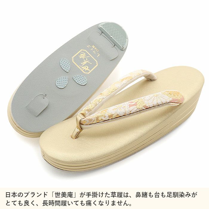 痛くなくて歩きやすい、初めての方にも安心の履き心地 留袖用草履バッグセット 訪問着用 草履バッグ 世美庵 Lサイズ ゴールド シルバー 金 銀 七宝 華紋 帯地 3枚芯 日本製