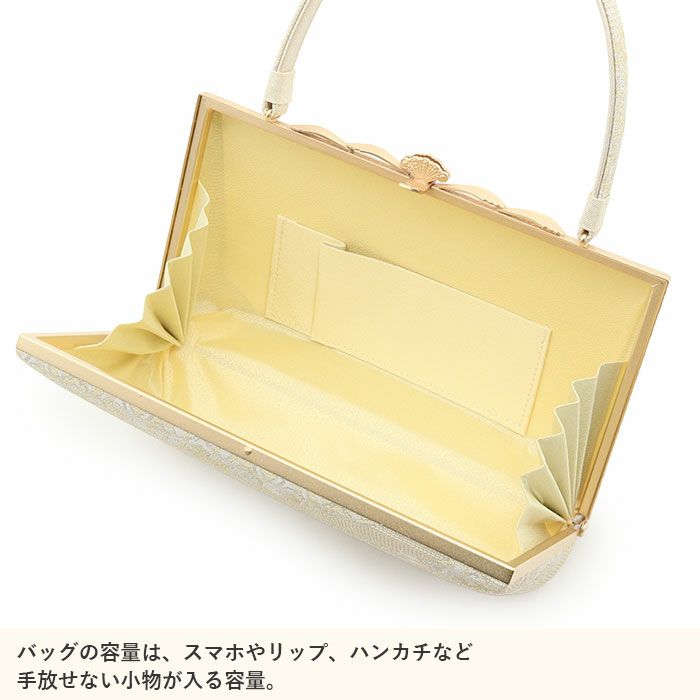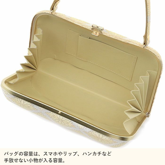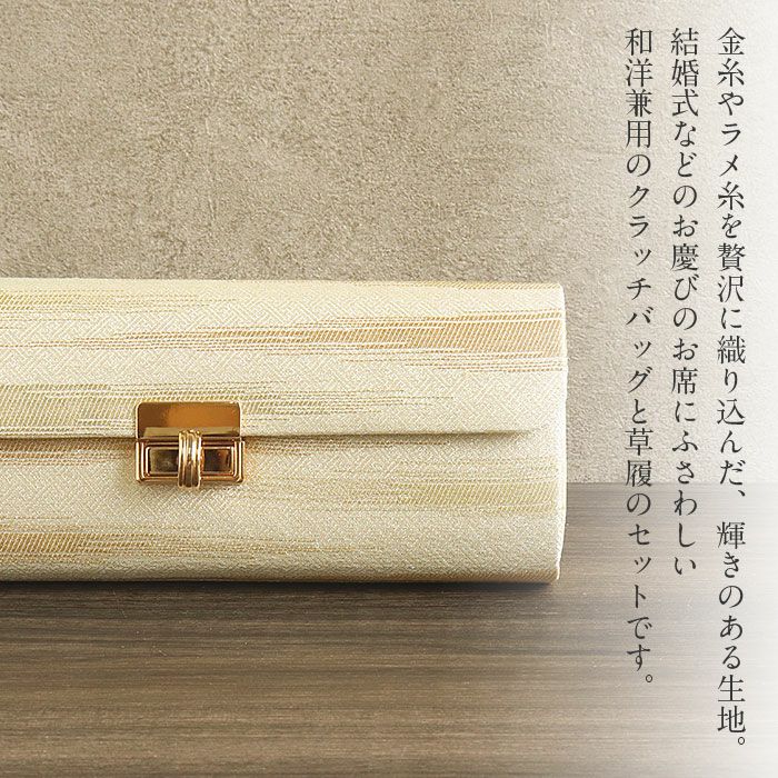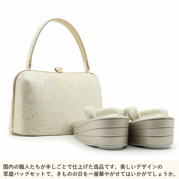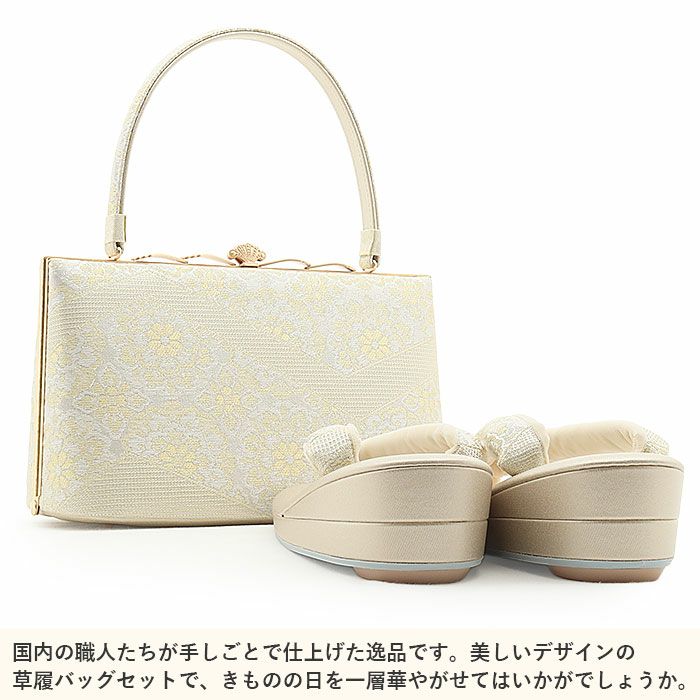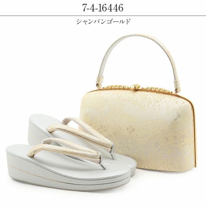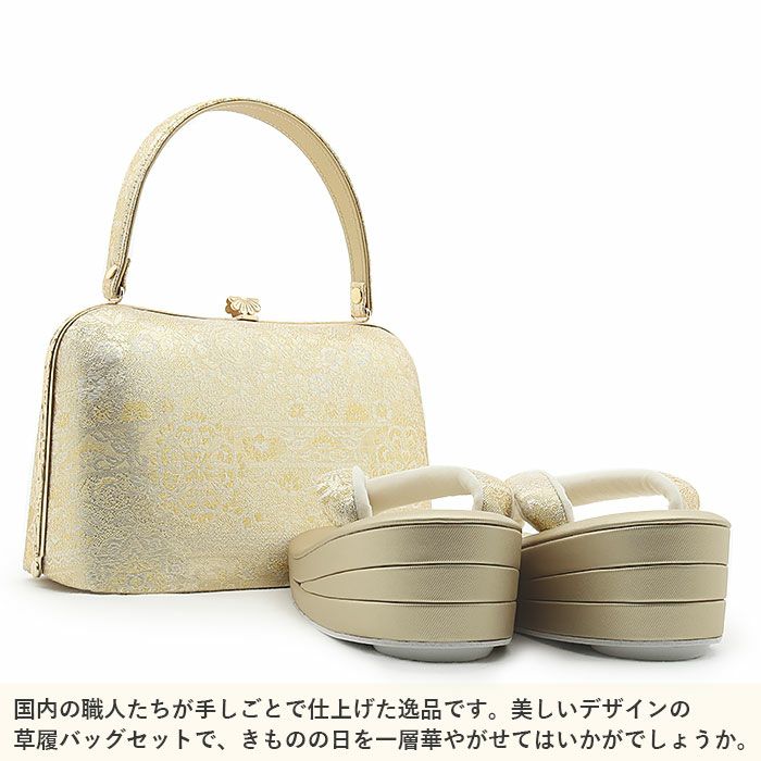 留袖用草履バッグセット 訪問着用 フリーサイズ Lサイズ 日本製 (かぶせタイプ)<シャンパンゴールド/流水に華紋>