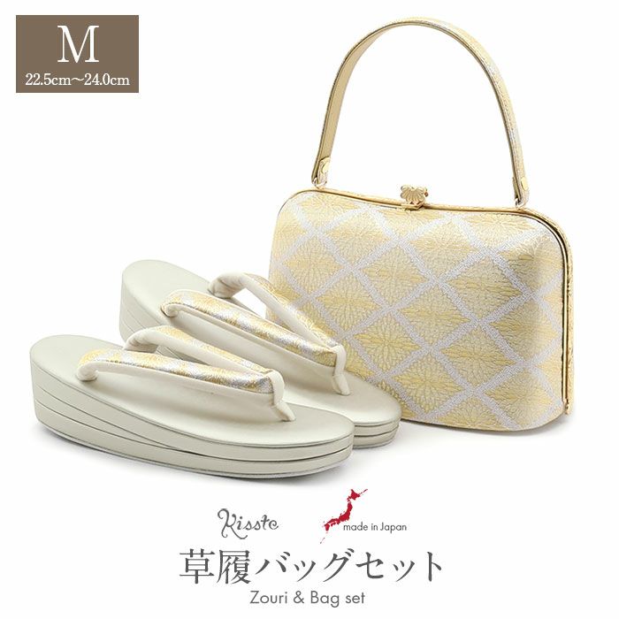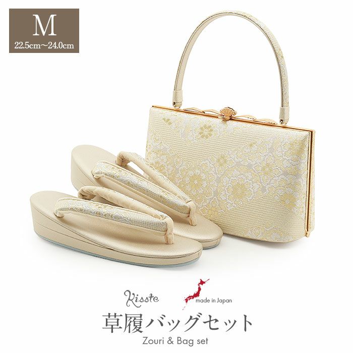 草履バッグセット 留袖用 訪問着用 <キステオリジナル 浅草匠> Mサイズ 日本製 <ゴールド/七宝に唐花>