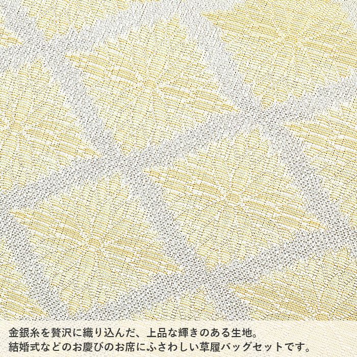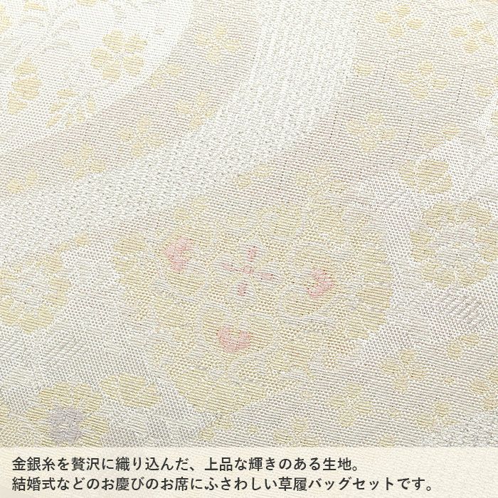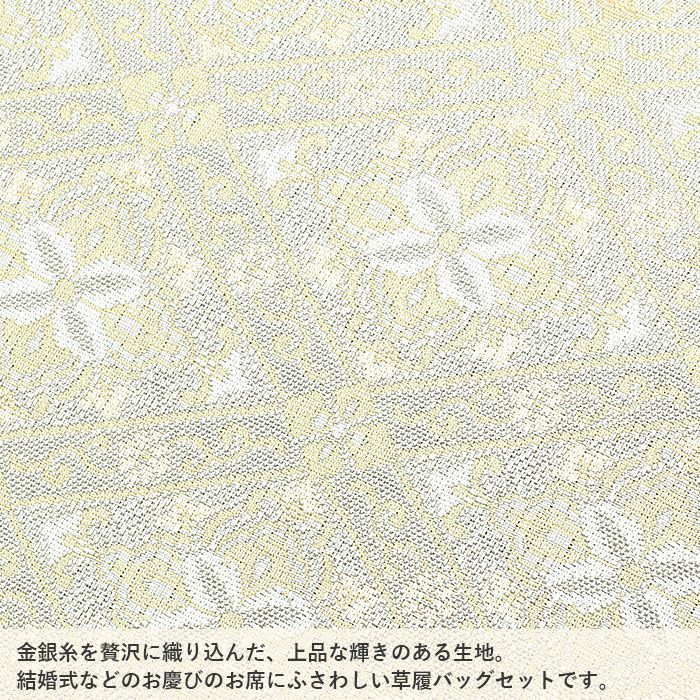 留袖用草履バッグセット 訪問着用 フリーサイズ Lサイズ 日本製 (かぶせタイプ)<シルバー・ゴールド/華紋並び>