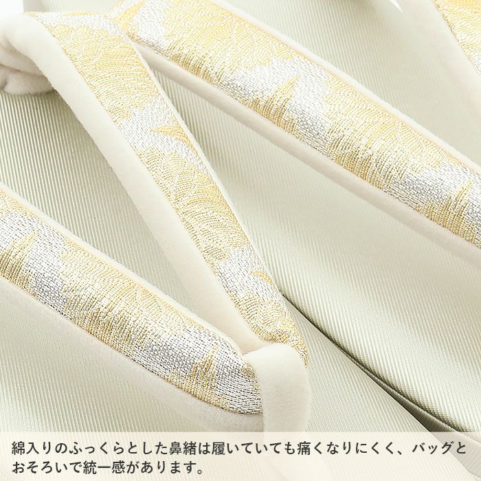 痛くなくて歩きやすい、初めての方にも安心の履き心地 留袖用草履バッグセット 訪問着用 浅草匠 Lサイズ ホワイトシルバー リーフ 正絹帯地 西陣織 3枚芯 日本製
