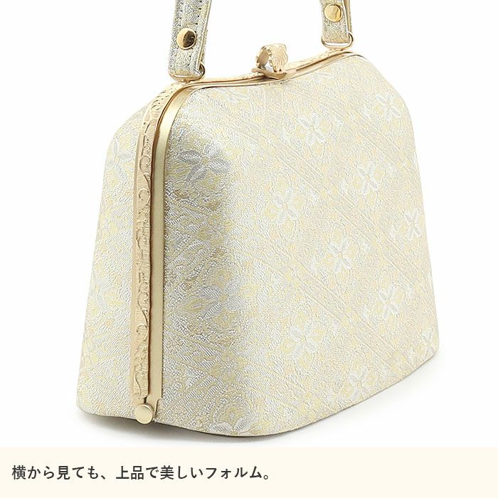 御茶席はもちろん 結婚式の黒留袖 色留袖や訪問着に 留袖 バッグ 利休バッグ 訪問着用 白 銀 黄緑 薄桃 角七宝 花七宝 西陣織 正絹帯地 日本製 黒留袖 色留袖 訪問着 礼装用 フォーマル
